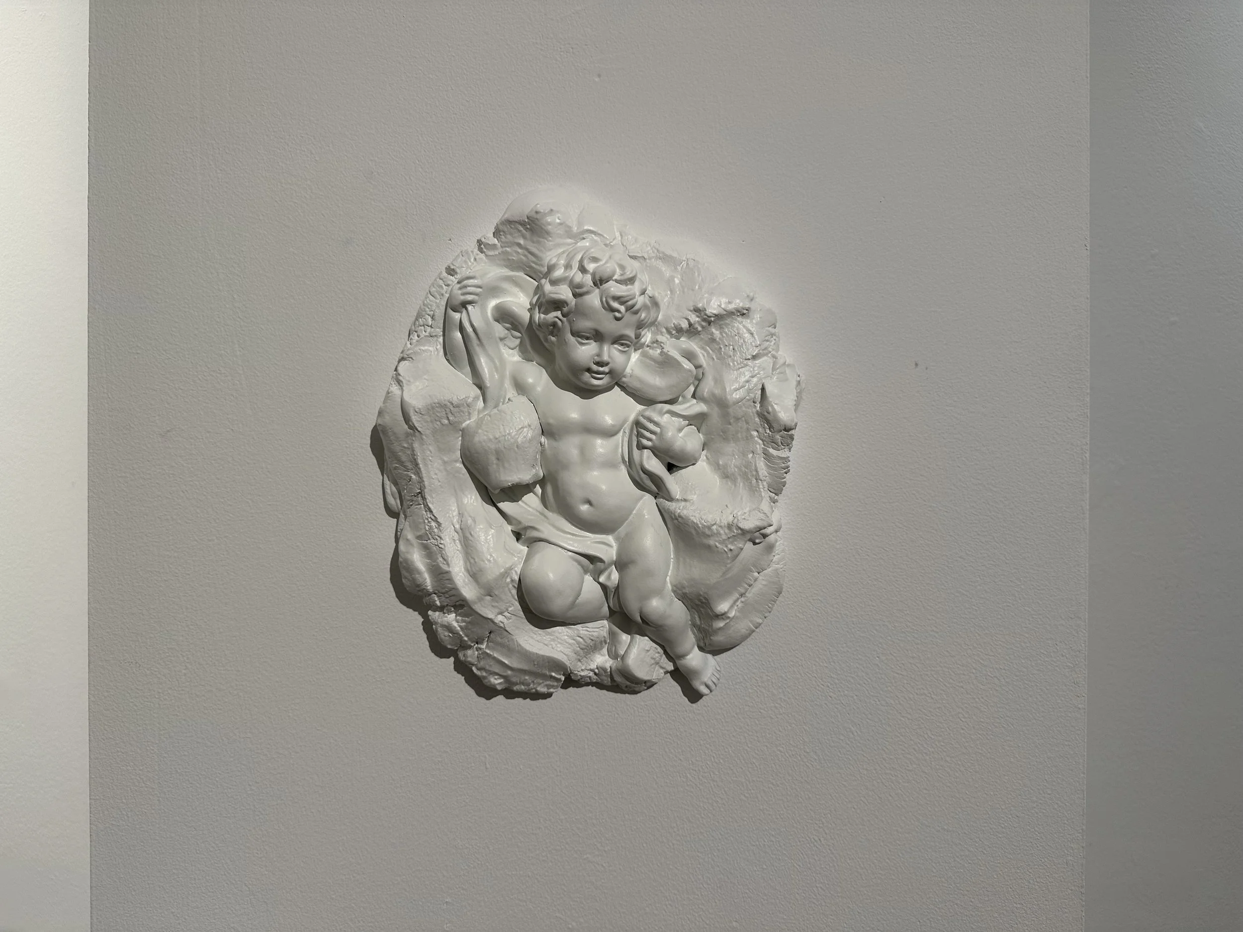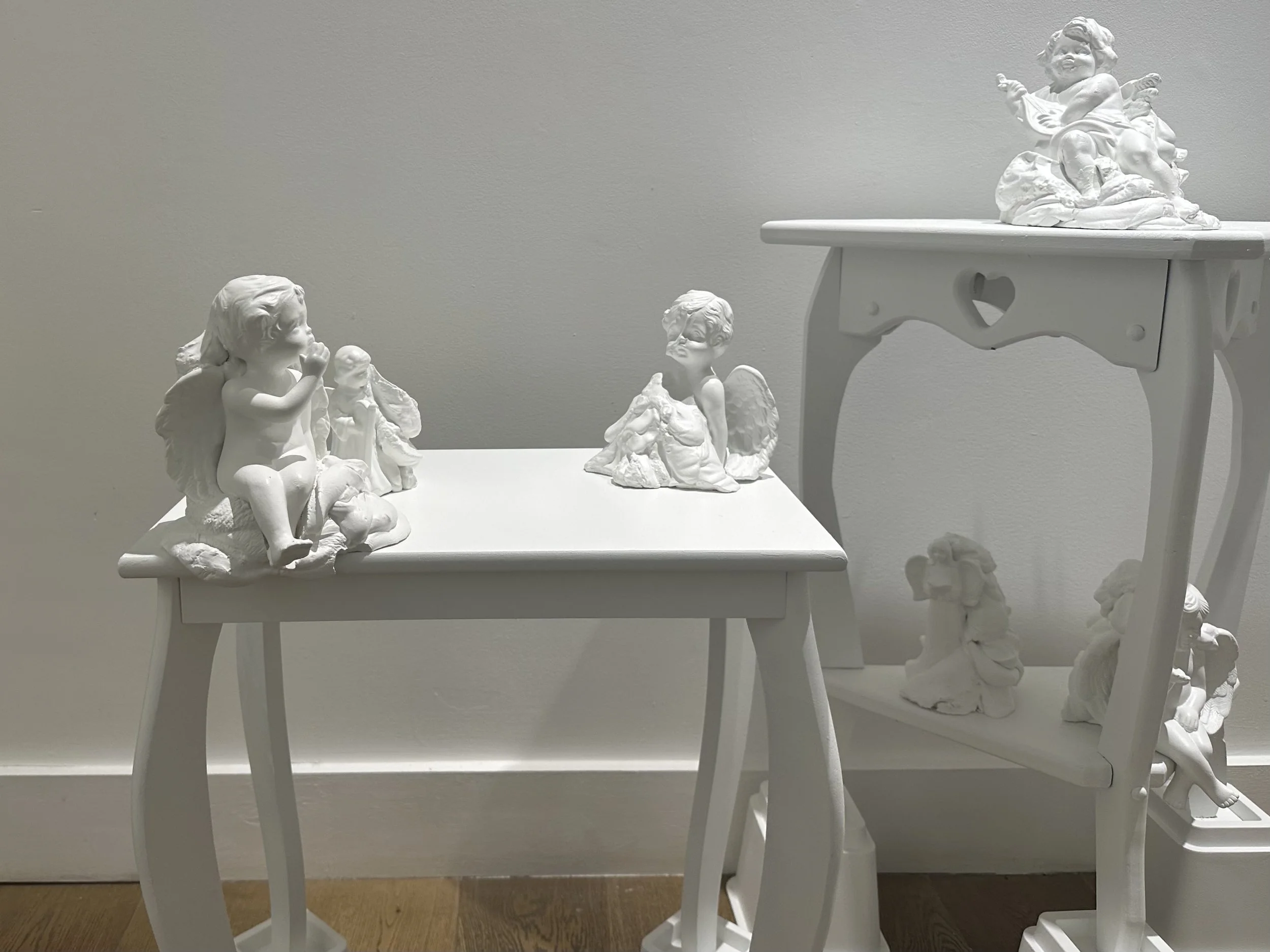 The angel is the focal point of the exhibition, standing in as a symbol for kitsch and the vernacular of ceramics. At the same time, it becomes a vessel for examining the trauma of religious structures that shaped my early life, particularly in their policing of queer and disabled bodies. The angel is not only a divine messenger but a silent enforcer within the domestic space.